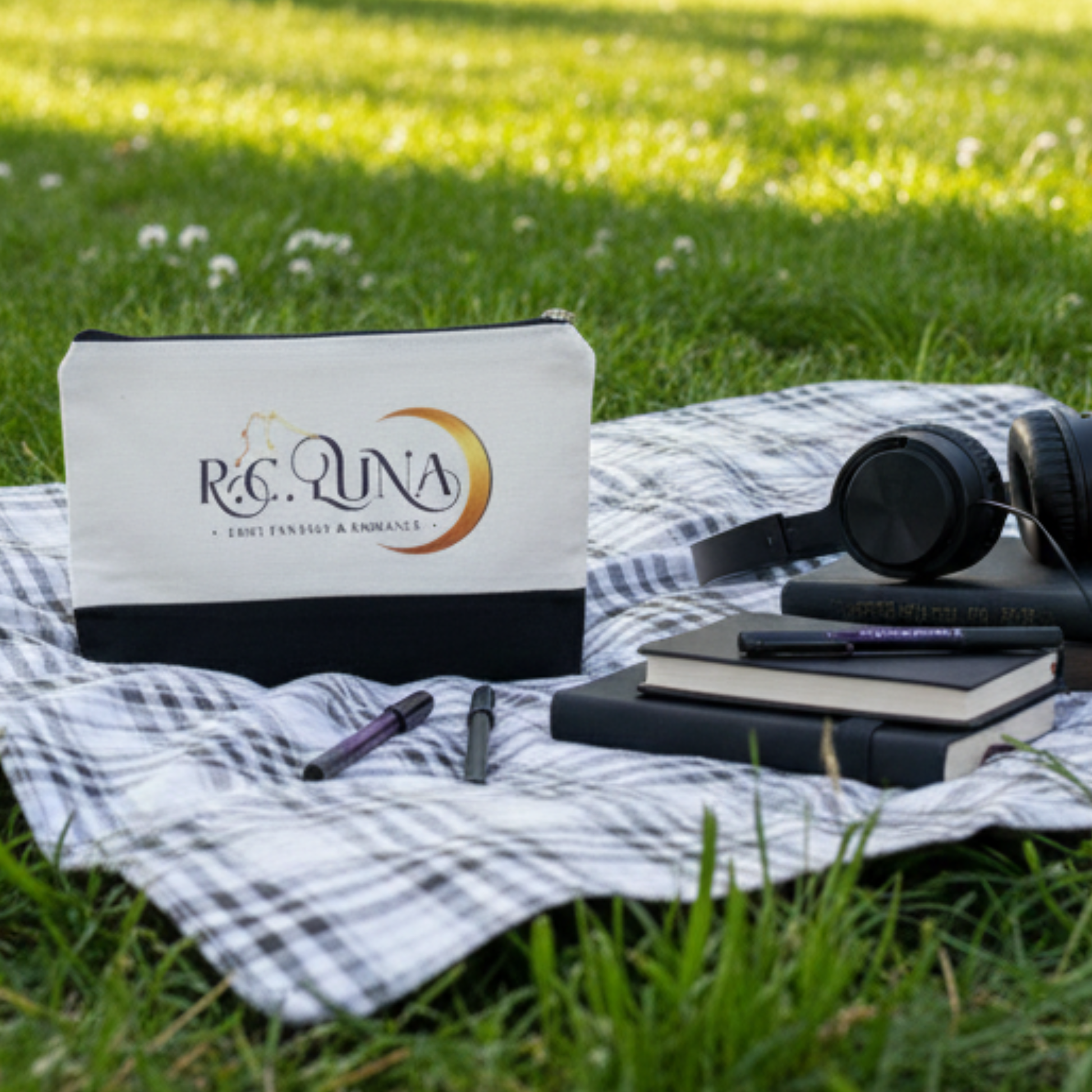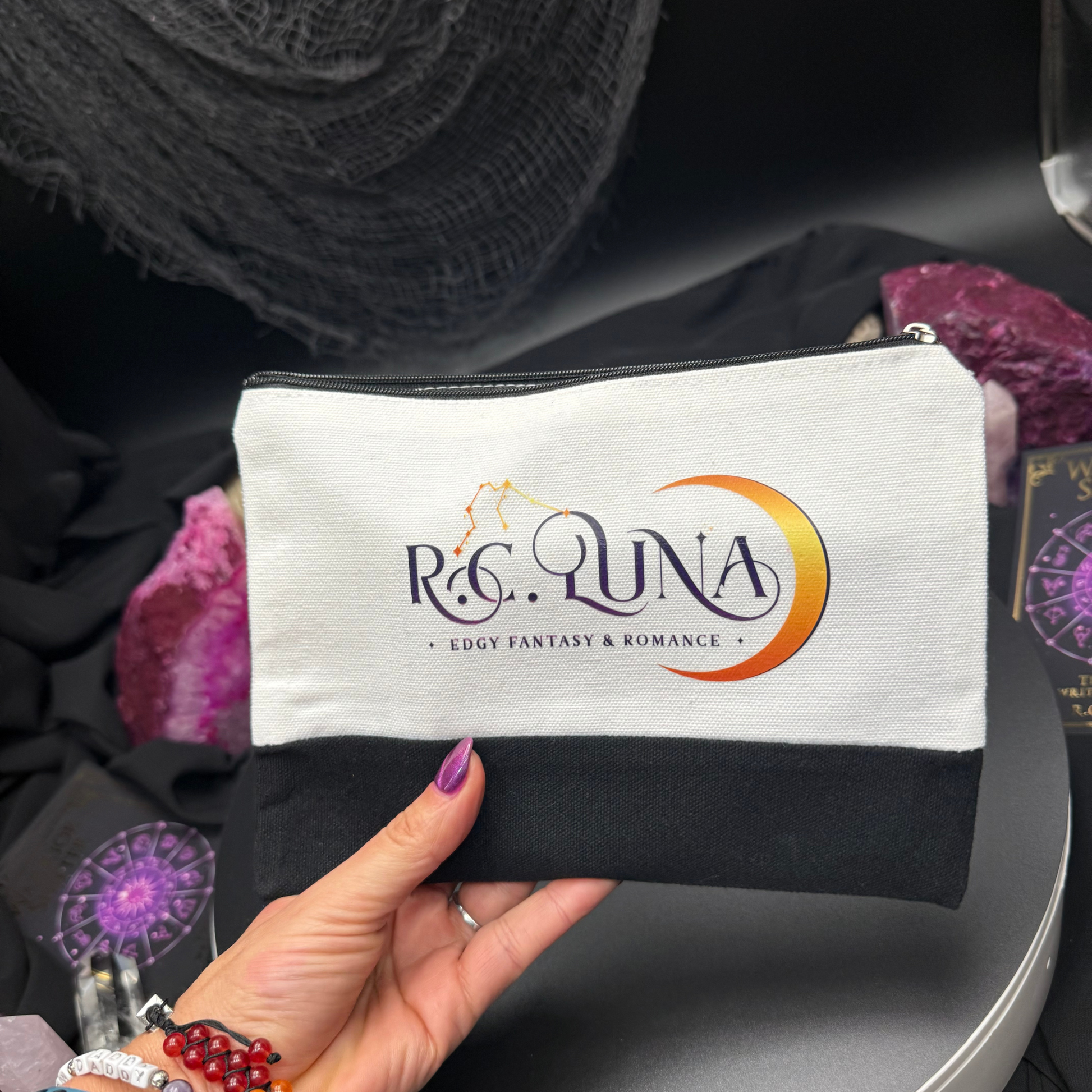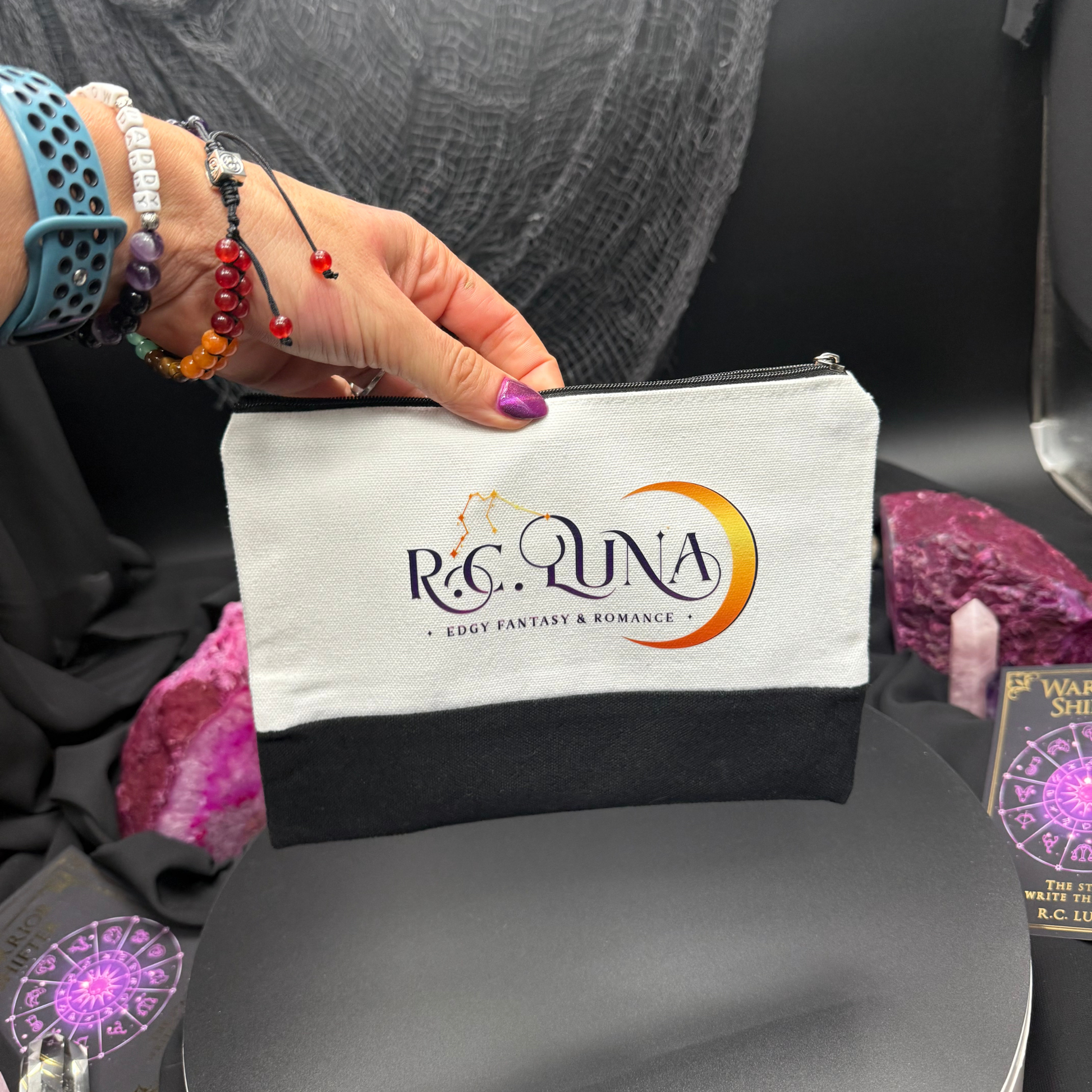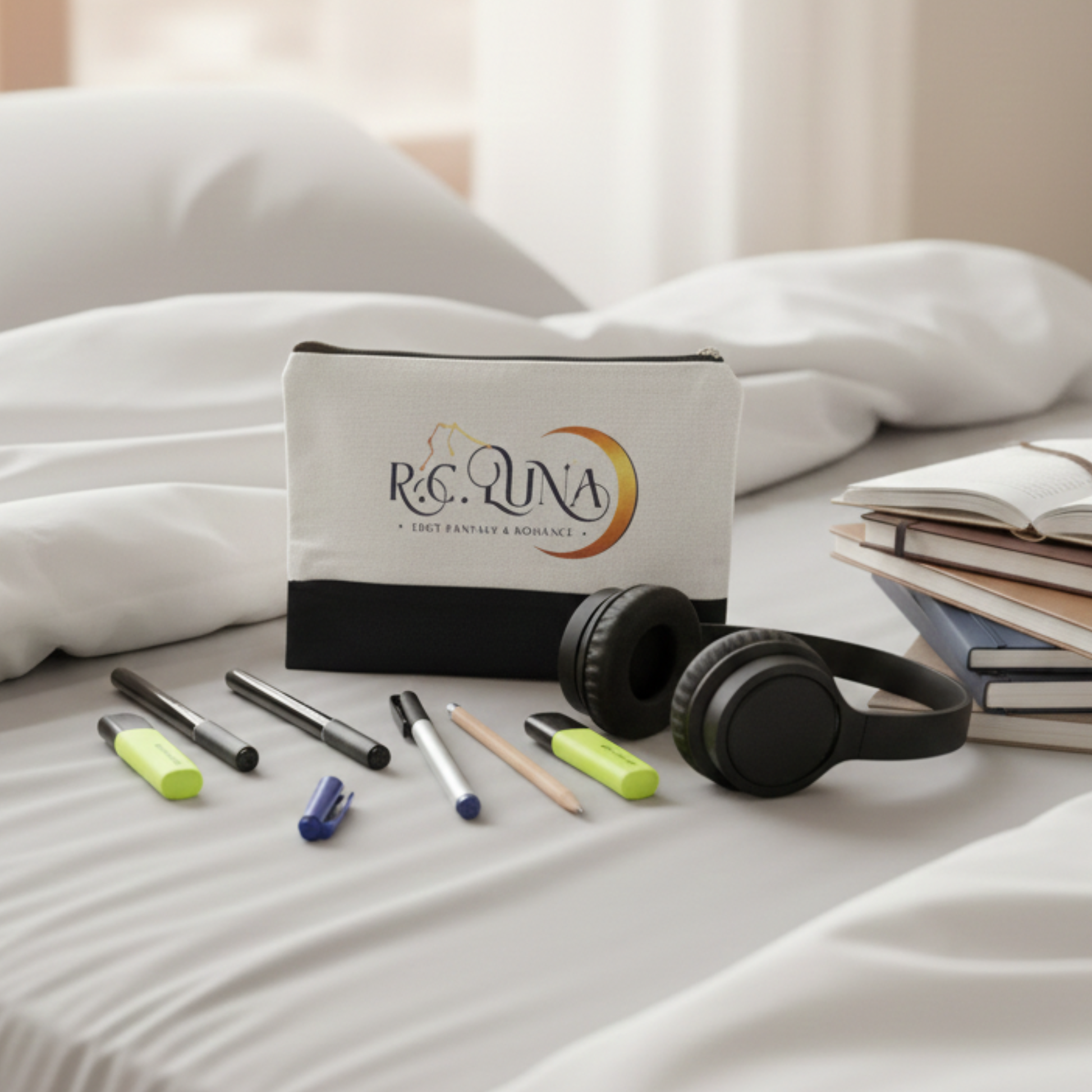 A sleek and durable pouch featuring the R.C. Luna author logo. Perfect for pens, pencils, makeup, or everyday essentials. Lightweight, easy to carry, and made for readers who like their tools organized and their style bold.