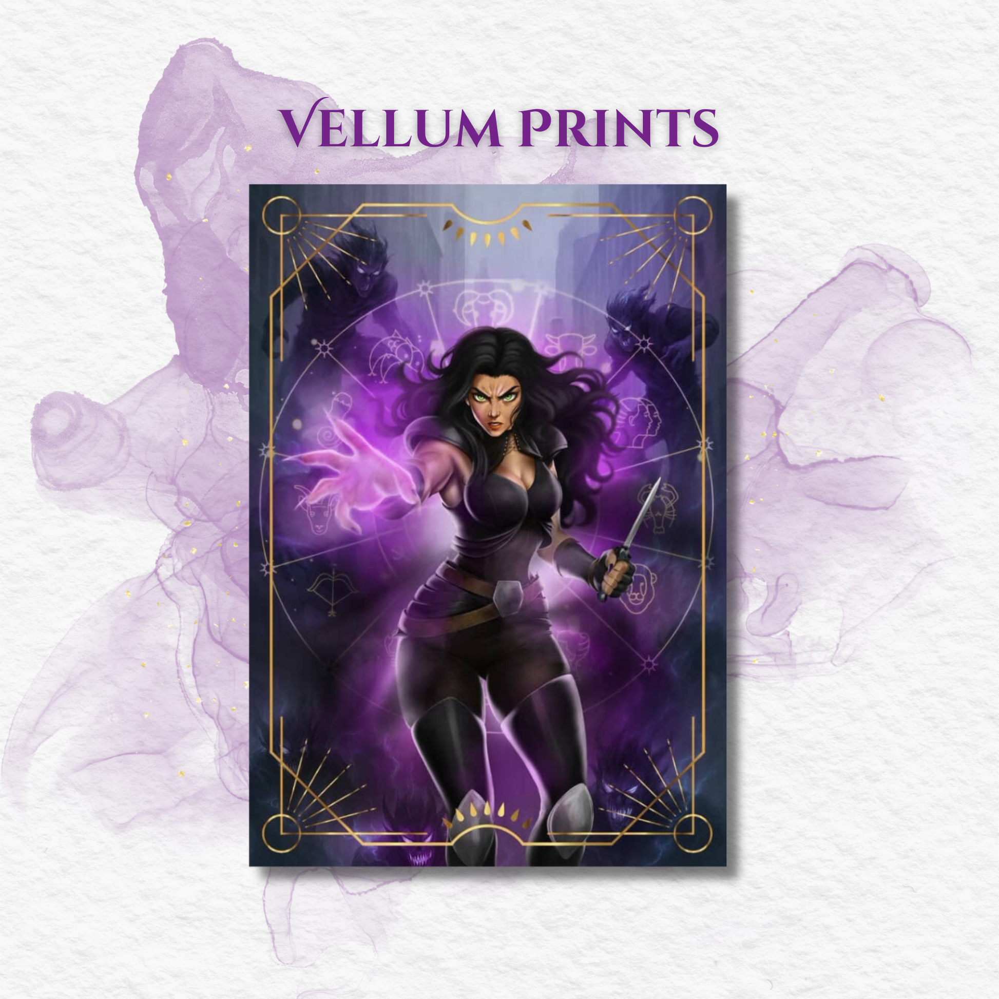 These vellum prints feel like holding the saga’s heartbeat. Fans love the blend of ancestry, fantasy, and power. Every piece celebrates Latina strength, transformation, and the worlds we create when the old ones refuse to make room for us.